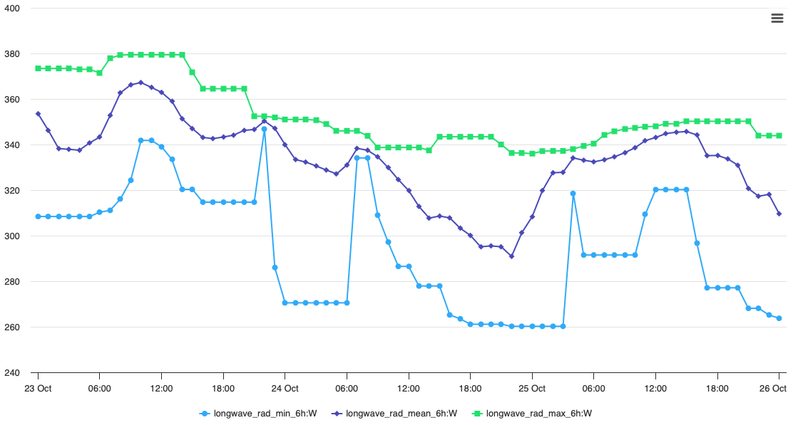 It is also possible to get the mean, maximum or minimum of the longwave radiation for an indicated time interval.